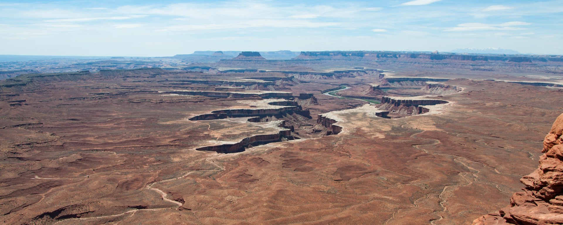 This vista was so huge that I started to think I could see the curvature of the earth (not likely, but it seemed that way). I was able to zoom in enough to see the Green River below and consider what it might be like to take a raft down through the canyon to get a closer look at the massive colorful walls. That would definitely be an awesome trip!